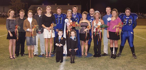 The 2004 homecoming queen was Katie Keene and king David King. The court was (from left) freshmen Marcus George and Ashton Brien, juniors Stephanie Harris and Todd Perryman, seniors Carrie Nesbit and Dustin Easley, queen Katie Keene and king David King, seniors Larissa Ellis and Justin Baker, 2003 queen Stacy Wagoner and 2003 king Matt Collins, and sophomores Emily Courtney and Jared Asbridge. The crown bearer and flower girl were Payton Riley and Raylee Carter.