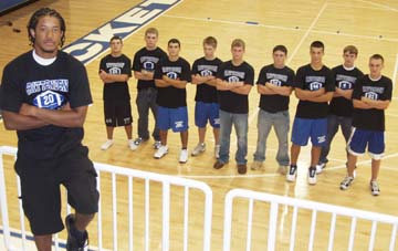 poses in front of teammates from the Top 10 (from left) Justin