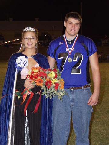 The 2004 homecoming queen was Katie Keene and king David King. The court was (from left) freshmen Marcus George and Ashton Brien, juniors Stephanie Harris and Todd Perryman, seniors Carrie Nesbit and Dustin Easley, queen Katie Keene and king David King, seniors Larissa Ellis and Justin Baker, 2003 queen Stacy Wagoner and 2003 king Matt Collins, and sophomores Emily Courtney and Jared Asbridge. The crown bearer and flower girl were Payton Riley and Raylee Carter.